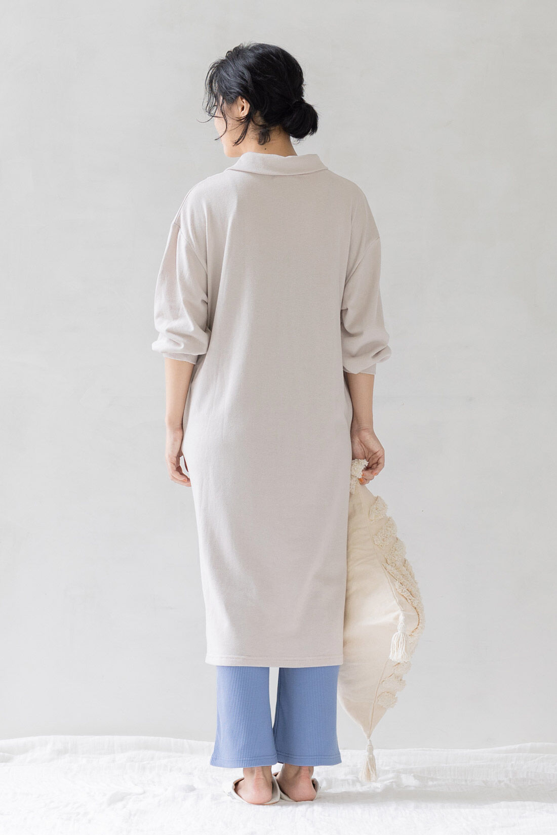 フェリシモMama|Moredde マタニティから産後も使える 授乳がらくちんフロントジップデザインのワンピ&リブパンツルームウェアセット 〈アイボリー×ブルー〉|ワンピースは裏毛のカットソー、パンツはリブカットソー。